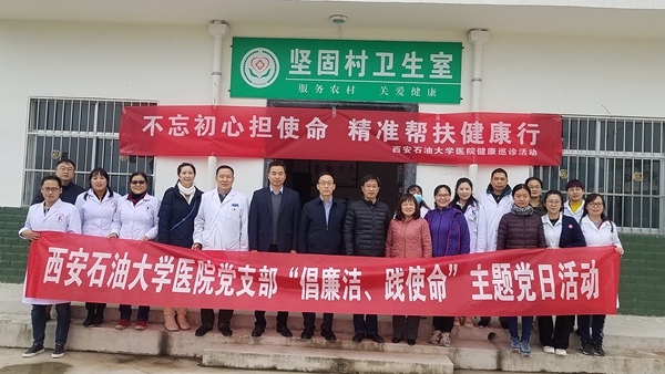 以黨支部為核心積極做好精準扶貧工作。校醫(yī)院負責對口幫扶2個精準扶貧單位,一個是市衛(wèi)計局指定的藍田縣輞川鎮(zhèn)甘家坪村,一個是學校對口的永壽縣永平鎮(zhèn)堅固村。黨支部帶領黨員和其他醫(yī)務人員把活動做到服務現(xiàn)場,支部每季度組織黨員干部赴藍田縣輞川鎮(zhèn)甘家坪村精準扶貧健康幫扶義診活動,每季度赴永壽縣永平鎮(zhèn)堅固村對口的開展義診活動,幫助對口村建設標準化衛(wèi)生室。共為200余名村民進行了健康查體工作,建立了健康檔案200余份,還為對口扶貧戶提供啟動創(chuàng)業(yè)基金,為幫扶對象送去慰問金和生活必需品等。開展健康幫扶義診活動使黨員干部深入基層了解群眾疾苦,零距離診療,提高村民健康水平和生活質(zhì)量,以實際行動“抓黨建,促脫貧”,體現(xiàn)了黨員的社會責任和擔當,增強為民服務的意識,健康幫扶活動得到了群眾的好評和贊譽,以實際行動表達了在學校黨委領導下,打贏脫貧攻堅戰(zhàn)的信心和決心。