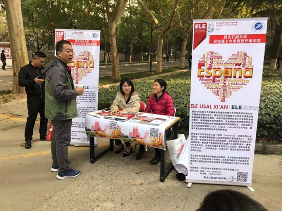 (西班牙語(yǔ)教師趙雨菡、意大利語(yǔ)教師張雨青在我校進(jìn)行薩拉曼卡大學(xué)西語(yǔ)學(xué)院招生宣傳工作)