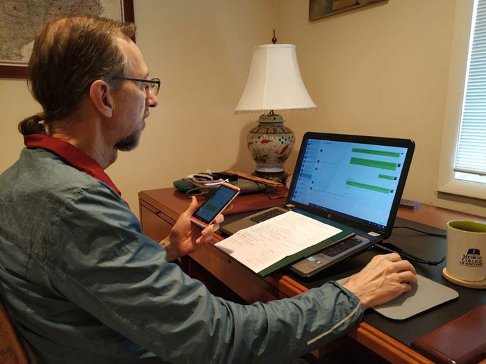 新學期Quinn老師教授英語1801/02兩個班的英語口語和英語1801/02及翻譯1801/02班的英語國家概況課程。他遠在美國,卻時刻關注中國的疫情發(fā)展,尤其關心他的學生們的學習和生活,主動與學院及授課所在系部領導溝通交流如何開展線上授課,提出方案及預案,并在開課前多次和所帶班級學生進行網(wǎng)課試運行。因美國和我國存在13個小時的時差,他寧愿犧牲自己的休息時間,也要保證在北京時間進行教學。個別時段Quinn老師也會將要講內容做成PPT課件進行錄播,配播一些視頻資料拓展學生視野,并在學生合適的時間通過QQ或微信答疑解惑。翻譯1801班秦夢園同學說:“疫情之前我們就在上Quinn老師的口語課,而值此疫情期間,遠隔大洋,我們通過網(wǎng)絡又與老師相聚云端,學習英語國家概況課,很是新鮮且興奮,Quinn老師又給我們展現(xiàn)了他教學風采的另一面,我們一定會配合好老師,把教授的知識一定記牢、學會,應用在實踐中,期待著與老師重逢在美麗的校園!”