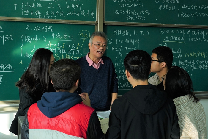 “師者,所以傳道授業(yè)解惑也”?;匦9ぷ髦蟮慕?0年來,汪躍龍老師先后承擔(dān)過13門課程的教學(xué)任務(wù),每年大幅超額完成學(xué)校規(guī)定的教學(xué)工作量。作為專業(yè)負責(zé)人,不論日??蒲泻徒虒W(xué)任務(wù)多么忙碌,汪老師始終以身作則,堅持高標(biāo)準(zhǔn)完成各項工作。他經(jīng)常是白天在鄠邑校區(qū)上完課以后,晚上加班加點趕回雁塔校區(qū)繼續(xù)工作,不論是寫材料、看文獻、做實驗,還是繼續(xù)給研究生上課,吃一個肉夾饃、喝兩口水繼續(xù)投入“戰(zhàn)斗”已經(jīng)成為他的工作常態(tài)。擔(dān)心學(xué)生理解不好課程內(nèi)容,汪老師上課從來不照著PPT上課,而是把重點內(nèi)容和疑難問題工工整整用粉筆寫在黑板上,類似工業(yè)儀表等內(nèi)部構(gòu)造復(fù)雜難懂的重要知識點,汪老師更是在黑板上一邊一筆筆親自畫圖一邊給學(xué)生耐心講解。每次課間,他總會不厭其煩幫助學(xué)生解疑答惑,鼓勵學(xué)生刻苦鉆研、揚長避短。在學(xué)生實驗、測試和研究不斷失敗或者遇到瓶頸問題一籌莫展時,他總會專門給學(xué)生“開個小灶”,幫助學(xué)生分析癥結(jié)。